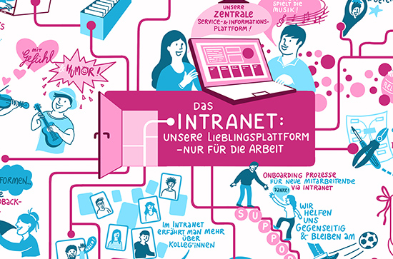 Die Illustration sollte auf humorvolle Weise den Umgang mit Kunden und innerhalb des Unternehmens darstellen.
